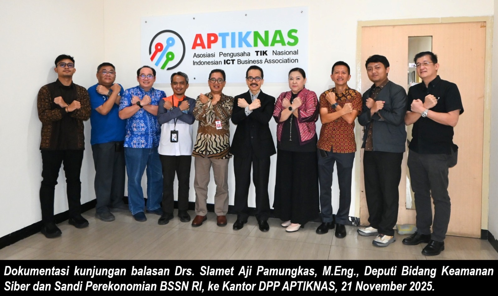 Sebagai tindak lanjut dari pertemuan tersebut, kolaborasi semakin diperkuat melalui kunjungan balasan oleh Drs. Slamet Aji Pamungkas, M.Eng., selaku Deputi Bidang Keamanan Siber dan Sandi Perekonomian BSSN RI, ke Kantor APTIKNAS bersama jajaran BSSN. Kunjungan timbal balik ini menjadi bentuk nyata penguatan hubungan kelembagaan, sekaligus menegaskan komitmen bersama antara BSSN dan APTIKNAS untuk membangun kerja sama yang berkelanjutan dalam penguatan kapasitas keamanan siber nasional, khususnya di sektor industri dan dunia usaha.