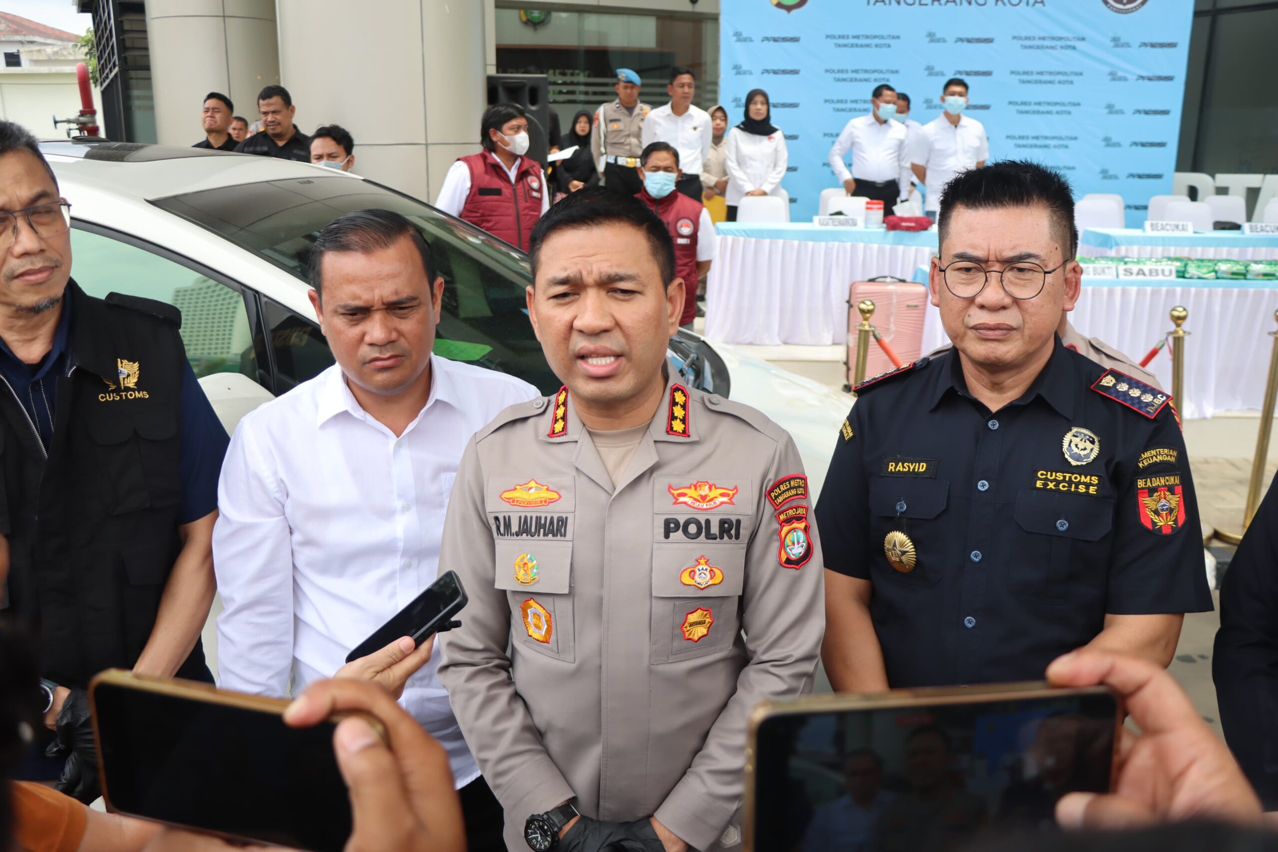 Kapolres Metro Tangerang Kota Dr. Raden Muhammad Jauhari mengatakan, pengungkapan ini merupakan hasil kerja sama Satresnarkoba dengan Direktorat Jenderal Bea dan Cukai serta koordinasi lintas wilayah Jawa Barat, DKI Jakarta dan Jawa Timur.